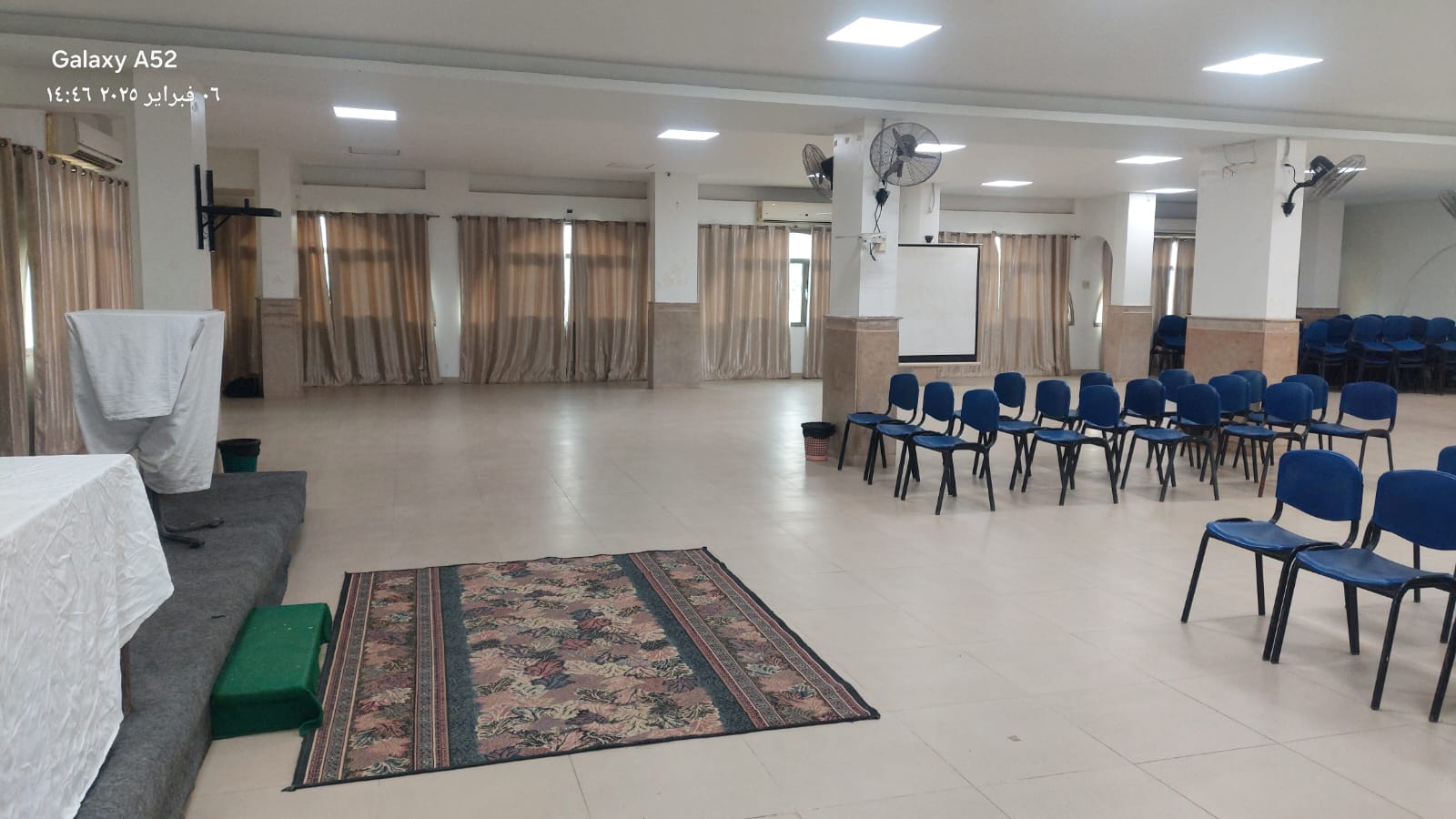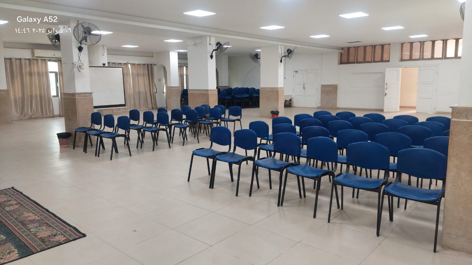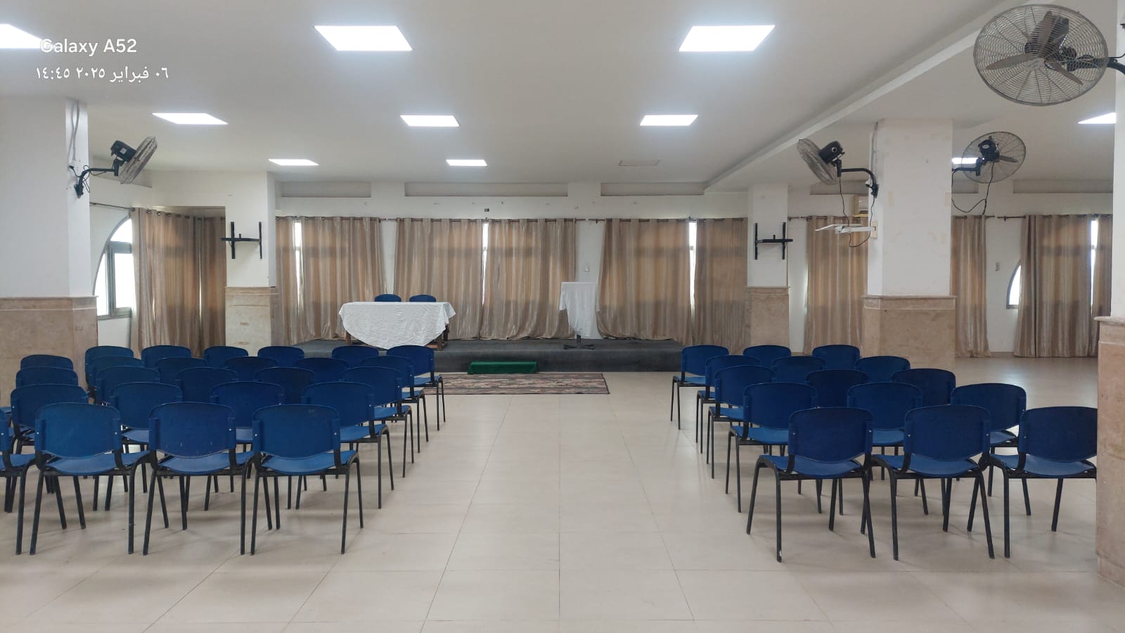 - قاعة مبنى A (تسع 50 فرد) بها مراوح ومكيفة.
